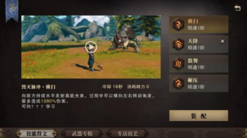 这个技能是原地不动,向前方发出高能光束,可左右水平移动,故称为横扫。由于该技能释放时无法移动,适合在巨兽倒地或者被控制时使用,不然很容易放空,或者被巨兽痛击,但前期输出就很强势,对付聚在一起的小怪更是蓄能好手。