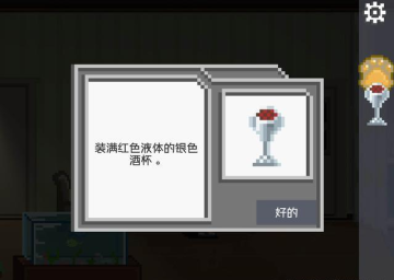 接着把装满酒的杯子使用到在大厅里的吸血鬼老婆,可获得道具诡异的人偶娃娃。