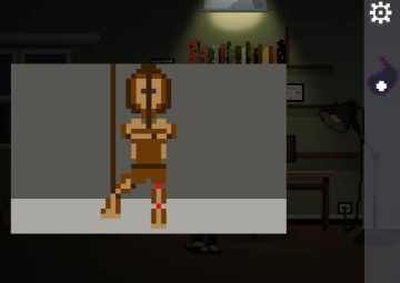 返回书房,在电脑桌上的模子使用人偶娃娃,触发谜题。之前猫儿的两个动作就是答案,如下图: