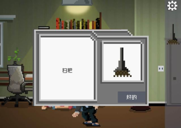 到书房,在老婆旁边拿到道具扫把。