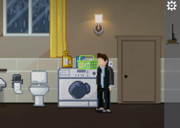 到浴室拿到道具脏衣服,顺手扔到洗衣机里。