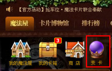 1、在魔法卡片的主界面右上角点击“变卡”图标: