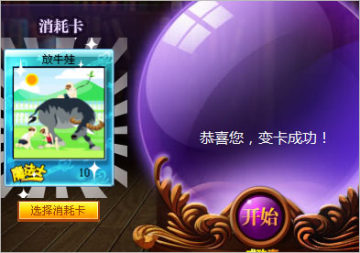 选号卡片后,点击“开始”则开始变卡,变卡后水晶球会显示变卡结果,如图: