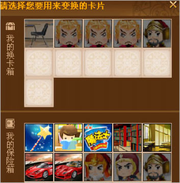 2、选择消耗卡界面,从换卡箱和保险箱处选取,如图: