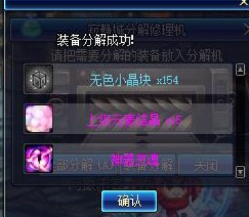 在这里说一下分解的小窍门,分解的时候一定不要用玩家的分解机,因为这样很大的几率会出金色小晶块。而在商店分解的话,是会出现暴击的,有可能一下子就是几百个上级元素结晶!
