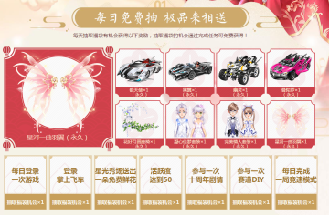 小提示:每期的万辆A车派送,分为【许愿时间】、【开奖时间】。[许愿时间]内收集到指定数量的福字,即可选择自己喜欢的奖励。官方将在所有选择了该奖励的玩家中,抽取幸运车手获得许愿奖励![开奖时间]内,必须登录游戏进入活动面板,即可收到开奖信息,周六周日记得来查看自己是否中大奖哦!