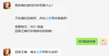 作者:网友整理 人气:0高渐离的游戏内称号是什么?不知道的召唤师,点击这里寻找答案吧~ 答题格式:WZ+答案回答正确可获得游戏奖励哦!王者荣耀给玩家带来了全新的高渐离的皮肤,很多玩家是不是还不知道高渐离这个英雄的称号呢?其实这个皮肤是为了春节和情人节准备的,今天小编便给大家带来王者荣耀高渐离的游戏内称号是什么问题的正确答案,一起来看看吧。