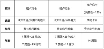 PS:武器可以附魔特殊的属强(冰/火),根据自己的主属强而定。护肩鞋子的巨龙附魔可以在NPC九龙兑换,直接拍卖购买过贵。实际附魔情况视能力而定。