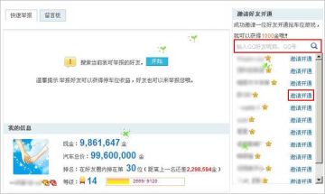 在QQ空间抢车位游戏页面右下角有个“邀请好友开通”模块,可以输入好友QQ号码或昵称,点击“邀请开通”或者直接在邀请列表里查找好友,点击“邀请开通”即可。如图: