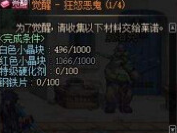 一旦不小心被自己跳过了,再做觉醒就不是免费的了,需要提交一些材料给到NPC,比如1000个白色小晶块、1000个红色小晶块、100个特级硬化剂、100个钢铁片,好像还有120个赫仑皇帝的印章、60个混沌魔石碎片和通关2次疑惑之村。