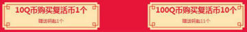 10Q币购买复活币1个可获得1个钥匙,100Q币购买复活币10个可获得11个钥匙;