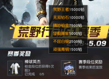 一共六个段位,奖励在上图中也很清楚,想要达到荒野王者段位,真的很难,因为谁都不能保证自己每盘都发挥完美。