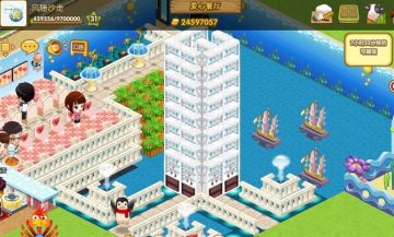 海上美食城顶级设计,美观、实用,与包箱水天相连,浑然一体。
