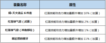 此处仅推荐一些常见、易获取或达成完美换装所必需的装备,其余可以增加红莲技能等级(lv20)技能的装备均可使用。