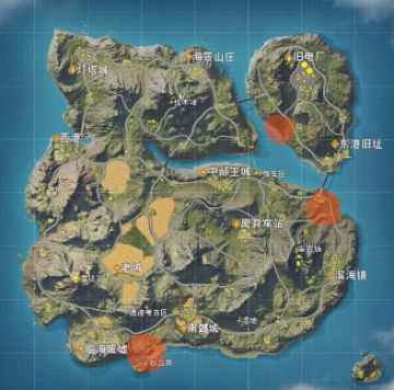 以上标记的是地图上长有椰子树的地方,这些地方都有比较多的椰子树,在这些椰子树底下,都会有较大的几率捡到椰子头盔。