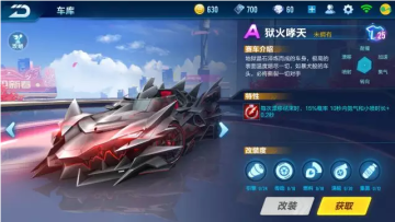 狱火哮天有着非常优秀的加速喷射和耐撞能力,适合道路狭窄的高难度地图,在对手羡慕的眼神里来个惊艳的冲刺加速,是不是非常帅气呢?