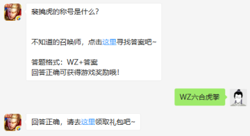 作者:网友整理 人气:0裴擒虎的称号是什么?不知道的召唤师,点击寻找答案吧~答题格式:WZ+答案回答正确可获得游戏奖励哦!又到了每天的王者荣耀每日一题时间了,今天给玩家带来的是王者荣耀中裴擒虎的称号是什么的问题,很多玩家都听过裴擒虎这个新英雄,但是裴擒虎的称号是什么呢?很多玩家就不是特别了解了。今天小编便给大家带来王者荣耀裴擒虎的称号是什么的问题的回答,一起来看看吧。