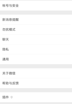 2.点击设置,进入到设置页面,这里显示着一下功能,如账号与安全、聊天、隐私、通用等,如图