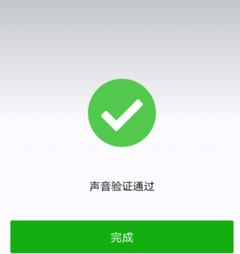 6.读完数字,跳转页面到如图的页面,提示:声音验证通过;点击完成就结束操作了