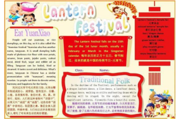 作者:网友整理 人气:0导读: 春节之后,就是元宵节,也是一年之中很特别的一个传统节日,是人们团聚在一起吃汤圆是元宵的日子。在元宵节,很多地方都会有各种各样的活动。下面让我们看看元宵节的英语手抄报图片吧!