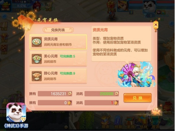 猜灯谜,吃元宵,欢喜度佳节。元宵节活动期间,三界少侠参与灯谜大会及其他元宵节活动即可获得元宵彩券,使用元宵彩券可在花灯仙子处兑换资质元宵。资质元宵是可以增加宠物某项资质的神奇道具,一共分为五种,分别对应攻击、防御、体力、法力、速度资质,助你打造更极品宠物!