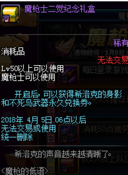 要么说他直接就是一个什么道具,这个还真不清楚了,或许大家等到有第一个完成魔枪士二觉任务的玩家揭秘了,小编是真的不清楚哟。