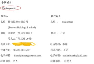 据报道,腾讯控股将一纸投诉书投到亚洲域名争议解决中心香港秘书处,针对域名fuckqq.com发起仲裁。