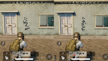 由于取消命中后准心变红的提示,枪械的稳定性就变得非常重要了。就拿AKM和M16两种枪比较,这两种枪都是很常见的枪械,但是稳定性的差别就很大。为此我特地做了一个弹道测试:两把枪都安装了步枪消焰器的情况下,除了点击射击其它不做任何操作。