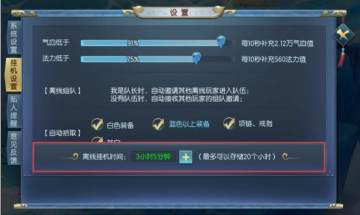 1.大于70级的玩家下线前可以打开“挂机设置”面板进行离线挂机的设置。