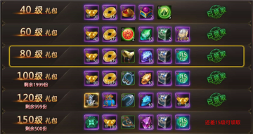 活动说明:每当角色达到指定等级,即可在“福利”-“等级礼包”界面领取。