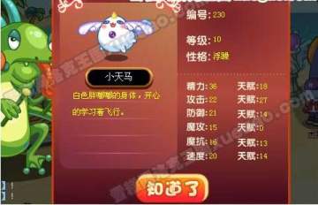 小天马 精力65 攻击60 防御65 魔攻60 魔抗60 速度100