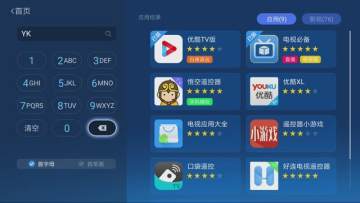 搜索优酷TV版,输入应用首字母“YK”即可看到。