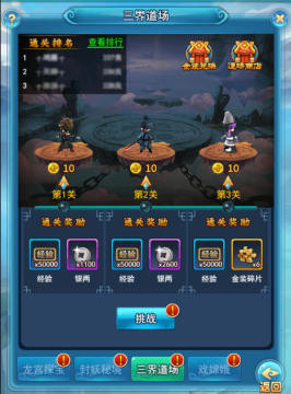 2. 三界道场(主城-副本)给的经验也是十分丰厚,自然难度也就比较高,过不去建议多打几次,这个游戏其实挺看暴击(脸)的。