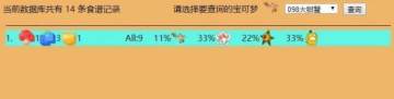 选择好要查询的宝可梦后点击查询按钮,就可以列出所有吸引到这只宝可梦的食谱,并显示每个食谱吸引宝可梦的概率。这个概率由大家添加的食谱计算得出,所以在数据量较少的时候可能不太准确。
