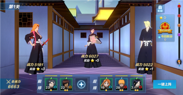 在勇闯瀞灵廷玩法中,我们需要使用自身卡牌组成战斗方阵,逐一挑战每一关,每个关卡设有三个不同难度(奖励也不同)的BOSS人物,挑战成功即可进入到下一关卡。