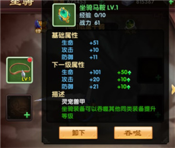 进行坐骑进阶可大幅增强坐骑属性,同时激活新的坐骑形象