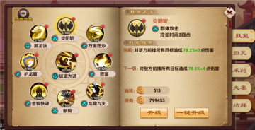 (1)展示目前可以学习的技能,技能随着玩家的等级开放