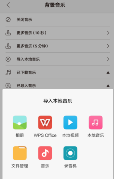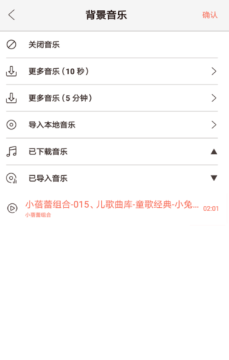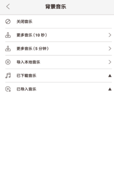 选择导入本地音乐命令,其他的就是系统提供的一些东西,大家可以尝试一下不同的配乐风格。