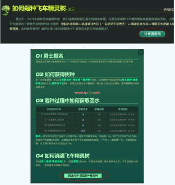 树木经过种子-发芽-小树-大树四个生长阶段,想要树木快速生长就需要获取圣水浇灌,精灵树生命顽强,当缺失圣水浇灌时只会停止生长保持现有状态,不会枯亡,要保卫飞车森林圣地获得更多更大的嘉奖就赶紧多多种植飞车精灵树吧。