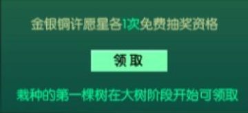 栽种的第一棵树,在树木生长到大树阶段起可免费领取金银铜许愿星各1次免费抽奖资格,