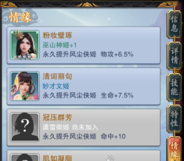 游戏中的情缘,属于激活后,累加三维属性,而情缘属于获得开启的武将,随即则获得该组合对应的情缘,无需情缘是否上阵;