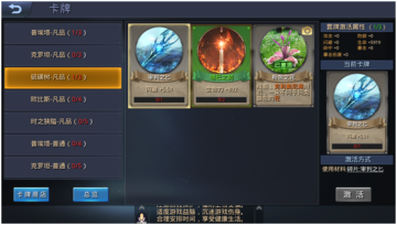 占星卡牌是游戏中一个特殊的收集类养成系统,玩家通过收集齐指定卡牌的对应碎片,即可在该系统内激活卡牌,获得单个卡牌激活后的属性加成。