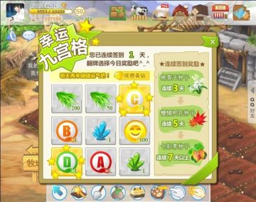 正如之前预告的一样,农场每日礼包已经于今天陆续登陆各位的农场。在领取黄钻礼包的位置附近你将会看到图标,点击后就会出现以下的九宫格。普通用户可以每天抽奖一次,黄钻用户额外获得一次抽奖机会。