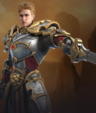 一身铠甲的圣骑士,手拿长枪和盾牌,定位为坦克。在生命、防御和动机方面有优势,上手难度普通。后期可以转职成为坦克类的龙骑士,圣堂武士,也可以转职为输出类的审判者。