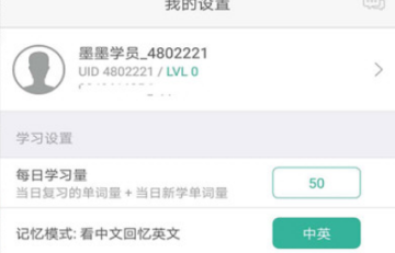1、首先,打开登陆在墨墨背单词APP,选择进入“设置”功能界面。