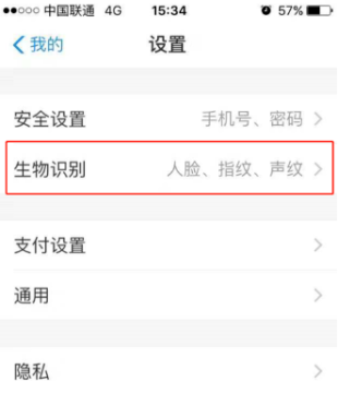 在【设置】界面,点击【生物识别】,进入生物识别开通设置界面