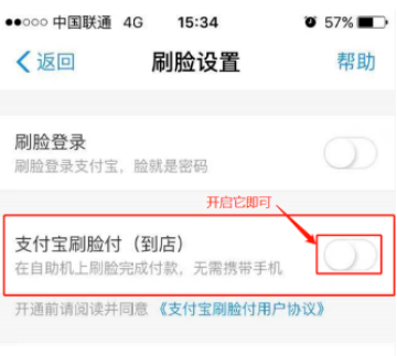 在【生物识别】界面点击【刷脸设置】,选择开通【支付宝刷脸付(到店)】,录入脸部特征