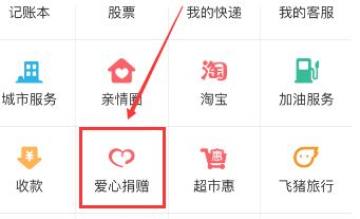 1、登录支付宝账号,然后点击主页面的“爱心捐赠”功能按键。