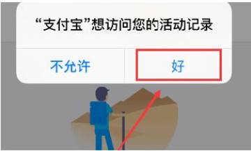 4、这时会弹出支付宝想访问活动记录的对话框,我们点击该对话框中的“好”按键。