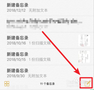 手绘男朋友其实用备忘录应用就可以制作,我们打开手机的备忘录,点击右下方的新建界面。